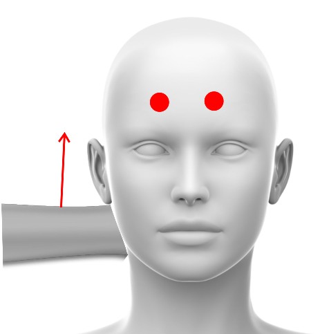 Daumen und Mittelfinger bzw. Zeigefinger auf der Harmonisierungspunkte / Stirnbeinhöcker ) sanft auflegen.
