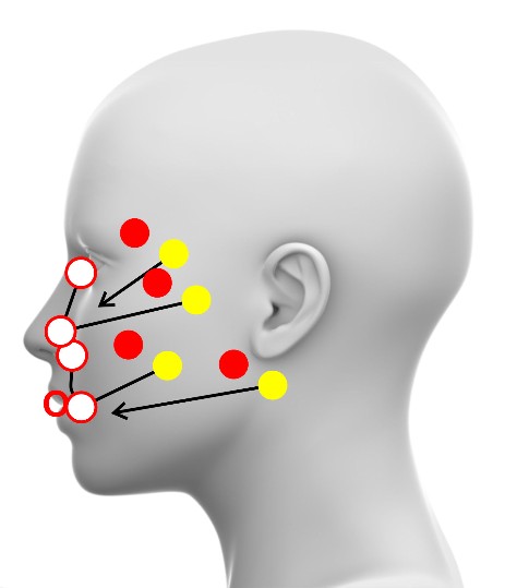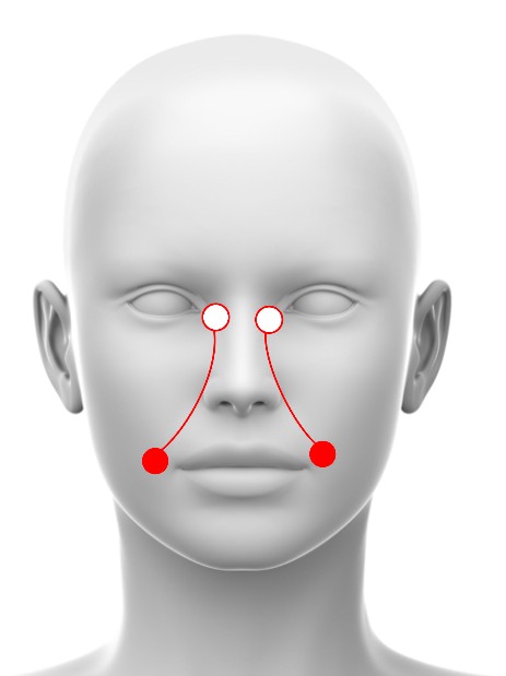 Danach Richtung Nase ziehen, der Ringfinger kommt am Nasenflügel an, darüber liegt der sanft der Mittelfinger
