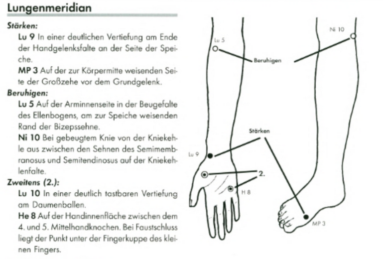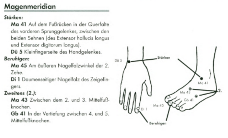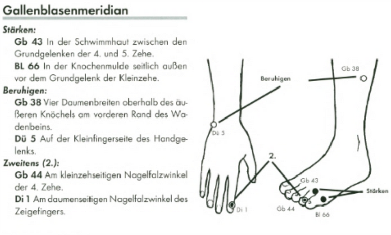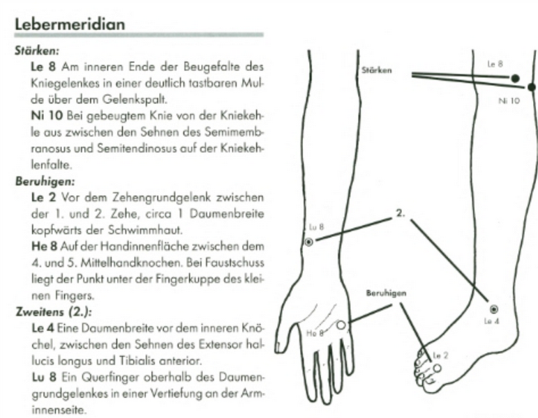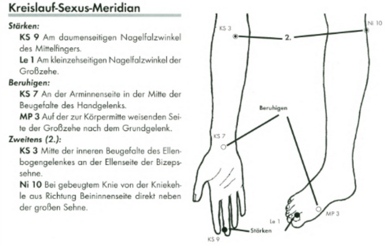 „Für dein Ziel haben die Akupressur-Halte-Punkte des ... Meridians zum Beruhigen erste Priorität".