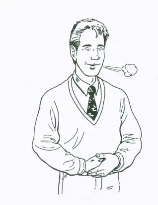 Lege die Hände auf den Bauch. Atme durch die Nase ein und atme durch den Mund vollständig aus, in kurzen, sanften Stößen, als ob du eine Feder in der Luft halten wolltest. Atme dann durch die Nase wieder langsam und tief ein - dein Bauch füllt sich allmählich mit Luft, wie ein Ballon. Und atme dann durch den Mund wieder aus. Beim Einatmen wölbt sich dein Bauch nach außen und beim Ausatmen senkt er sich wieder.