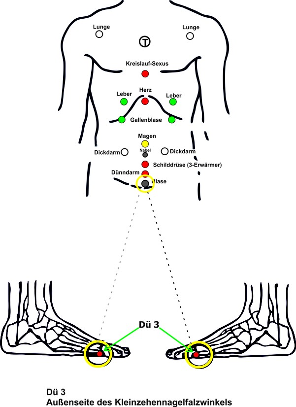 Zwei Querfinger oberhalb der Mitte des Schambeinrands